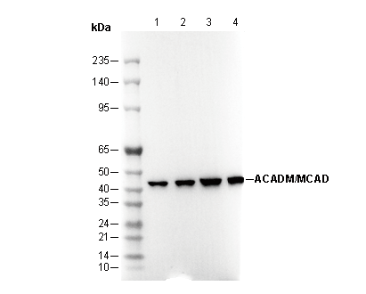 ACADM/MCAD Antibody [P2N1] recognizes endogenous levels of total ACADM/MCAD protein.