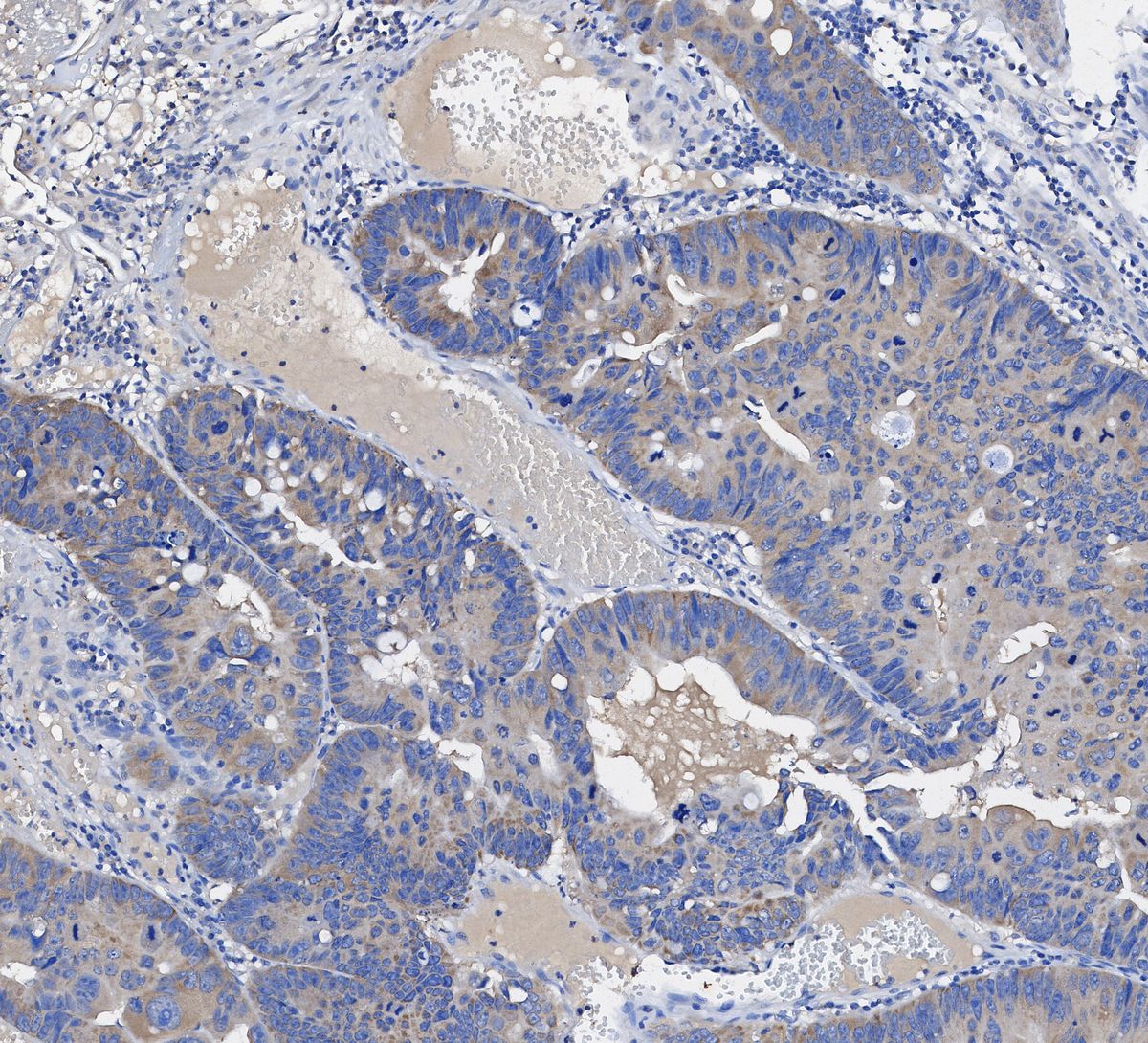 • Immunohistochemical analysis of formalin fixed paraffin embedded human Colorectal cancer tissue with F0270 at 1/50 dilution.