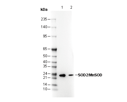 Acetyl-SOD2/MnSOD (Lys 68) Antibody [K15N16] recognizes endogenous levels of total SOD2/MnSOD protein only when acetylated at Lys 68.