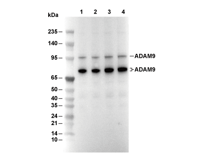 ADAM9 Antibody [M15P12] detects endogenous levels of total ADAM9 protein.