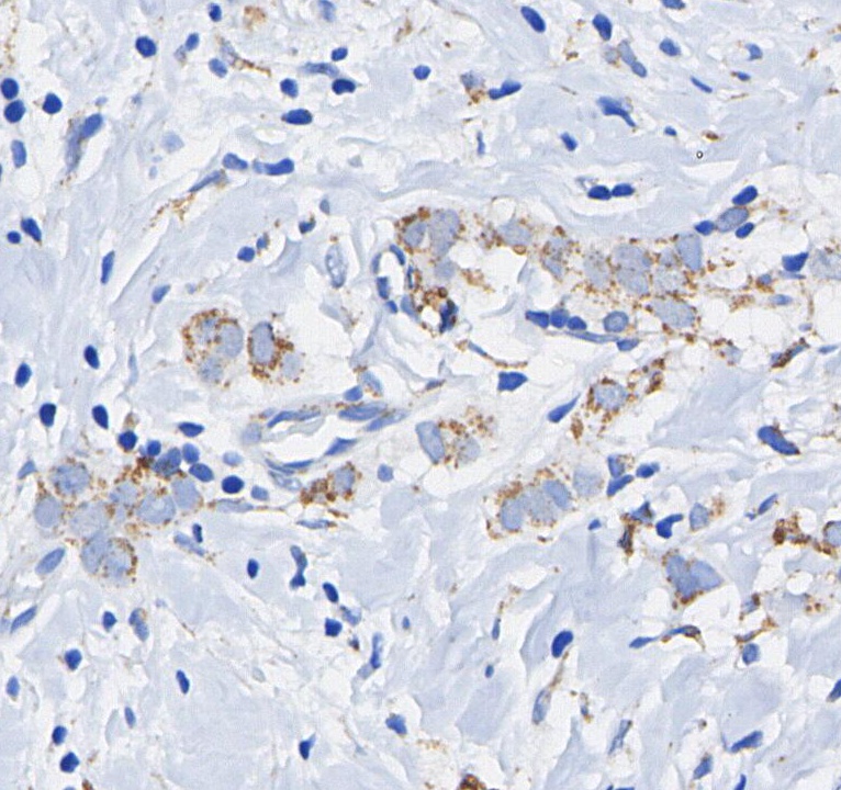 • Immunohistochemical analysis of formalin fixed paraffin embedded human Breast cancer tissue with F0268 at 1/100 dilution.