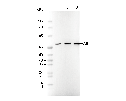 AIF Antibody [M7C3] detects endogenous levels of total AIF protein.