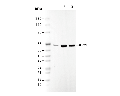 Akt1 Antibody [C19L11] recognizes endogenous levels of total Akt1 protein.