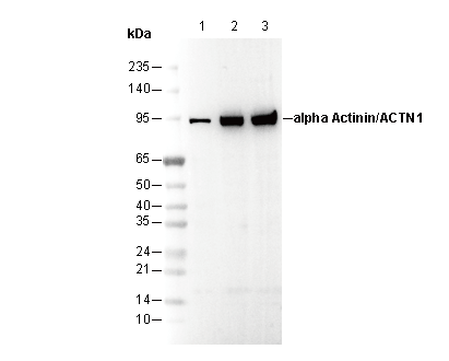 α Actinin 1/ACTN1 Antibody [C8H2] recognizes endogenous levels of total alpha-actinin protein.