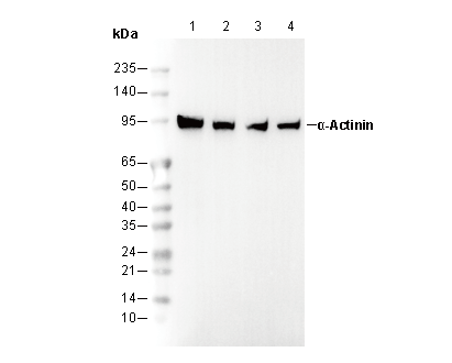 α Actinin Antibody [C22H3] recognizes endogenous levels of total α-actinin protein.
