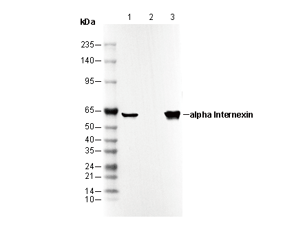 α-Internexin Antibody [M10F17] recognizes endogenous levels of total α Internexin protein.