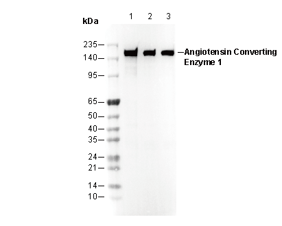 Angiotensin Converting Enzyme 1 Antibody [L2A17] recognizes endogenous levels of total angiotensin converting enzyme 1 protein.
