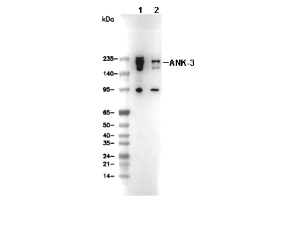 ANK-3 Antibody [M12B24] detects endogenous levels of total ANK-3 protein.