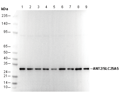 ANT2/SLC25A5 Antibody [J2A4] recognizes endogenous levels of total ANT2/SLC25A5 protein.