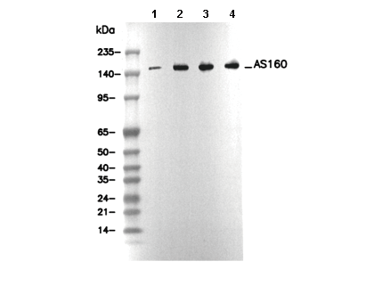 AS160 Antibody [L14F10] recognizes endogenous levels of total AS160 protein.