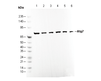 Atg7 Antibody [K21F3] recognizes endogenous levels of total Atg7 protein.