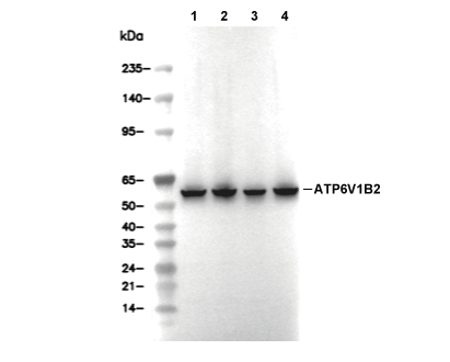 ATP6V1B2 Antibody [K16G16] detects endogenous levels of total ATP6V1B2 protein.