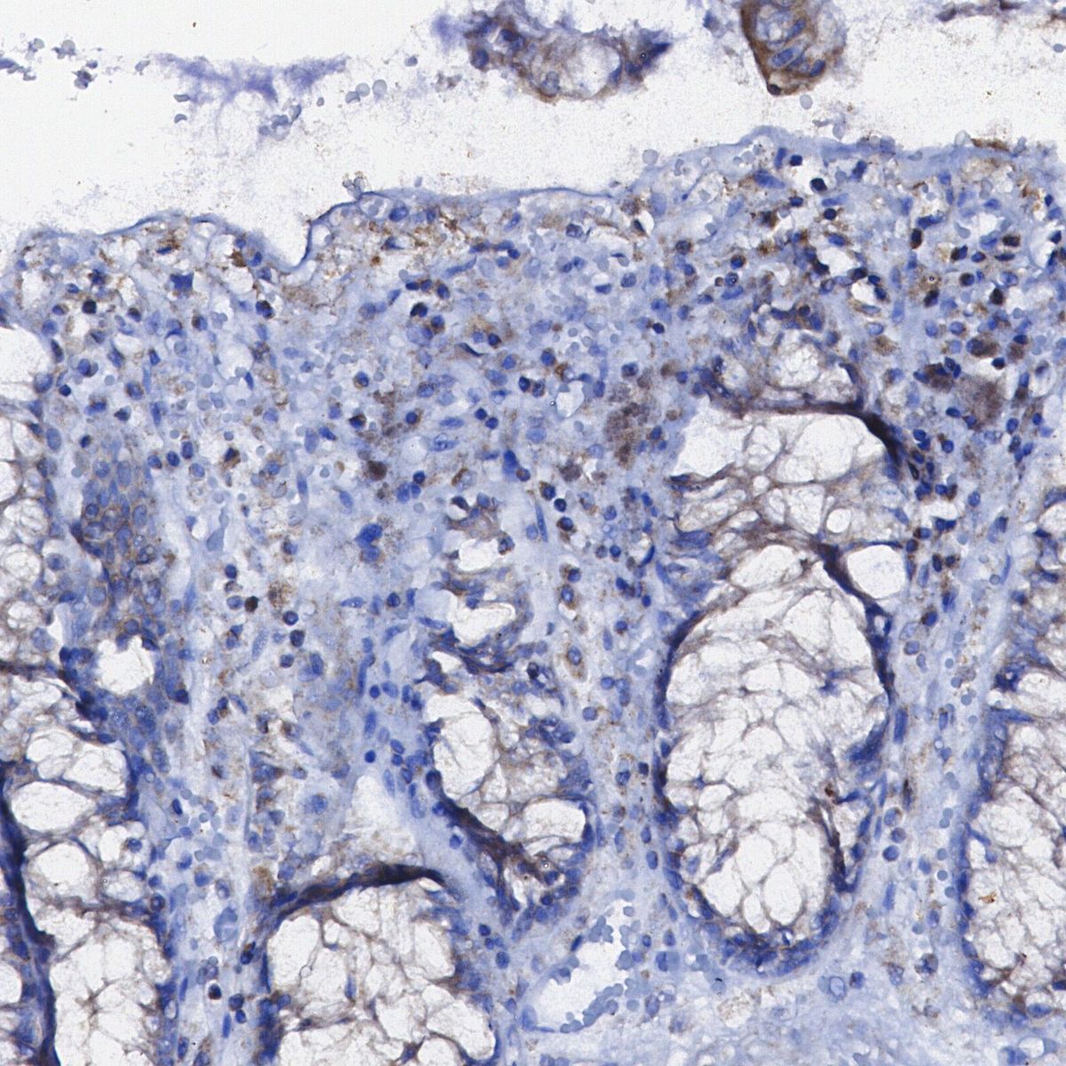 • Immunohistochemical analysis of formalin fixed paraffin embedded human Colorectal cancer tissue with F0321 at 1/100 dilution.