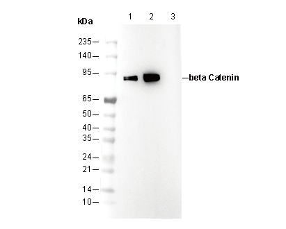 • Lane 1: HeLa , Lane 2: MCF7 , Lane 3: MCF7 (KO CTNNB1)