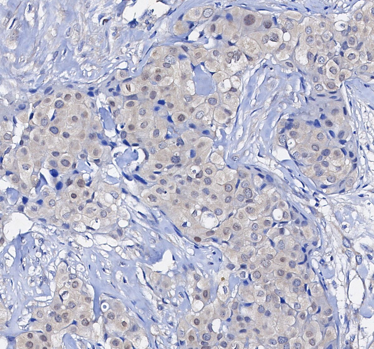 • Immunohistochemical analysis of formalin fixed paraffin embedded human breast cancer tissue with F0570 at 1/50 dilution.