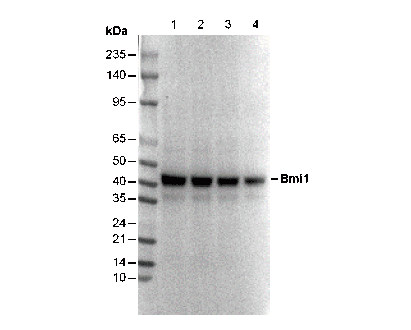 Bmi1 Antibody [F9A10] recognizes endogenous levels of total Bmi1 protein.