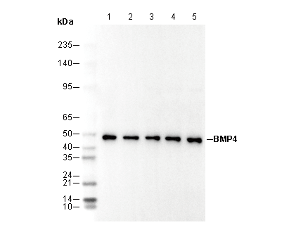 BMP4 Antibody [J12D21] recognizes endogenous levels of total BMP4 protein.
