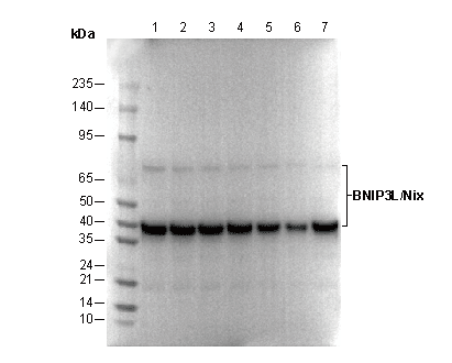 BNIP3L/Nix Antibody [K19B13] recognizes endogenous levels of total BNIP3L/Nix protein.