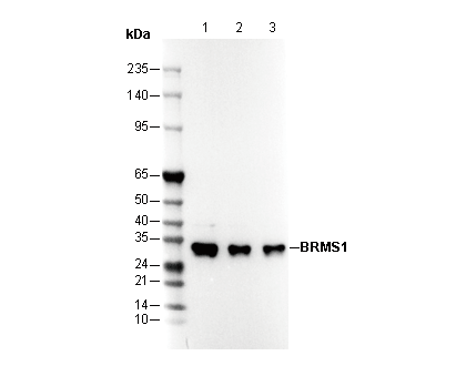BRMS1 Antibody [C20A17] recognizes endogenous levels of total BRMS1 protein.