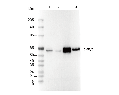 本抗体はMYC癌遺伝子ファミリーの転写因子N-Myc及びc-Mycを認識するが、MYCタグタンパク質は認識しない。