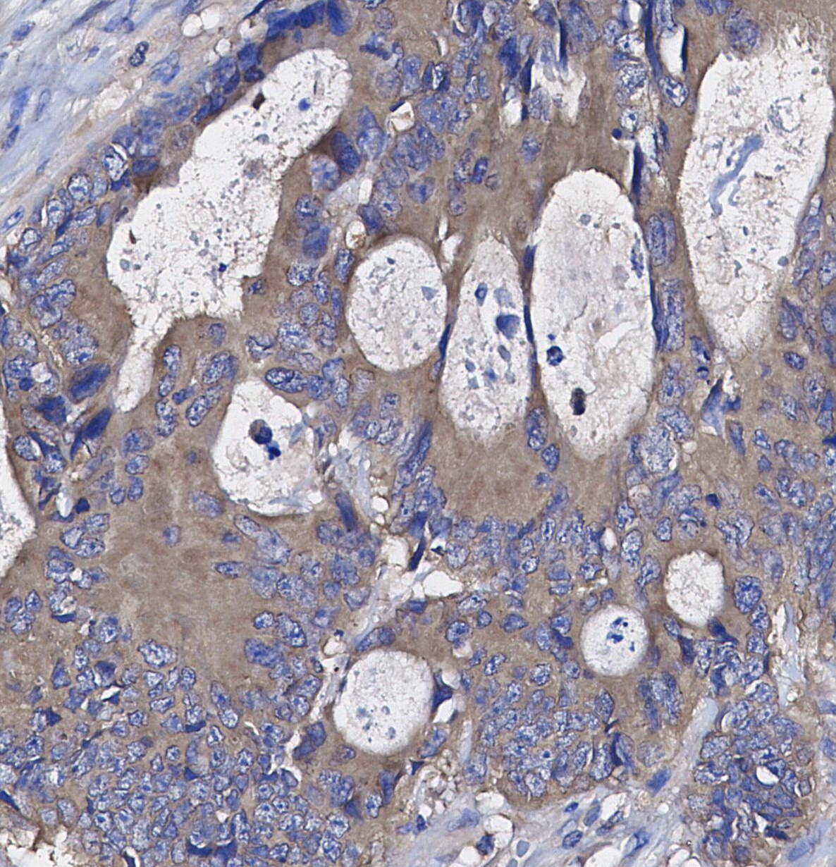 • Immunohistochemical analysis of formalin fixed paraffin embedded human Colorectal cancer tissue with F1700 at 1/100 dilution.