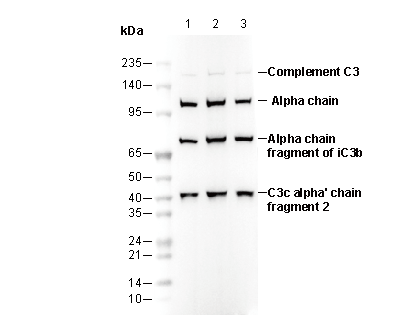 C3 Antibody [C23P8] recognizes endogenous levels of total c3 protein.