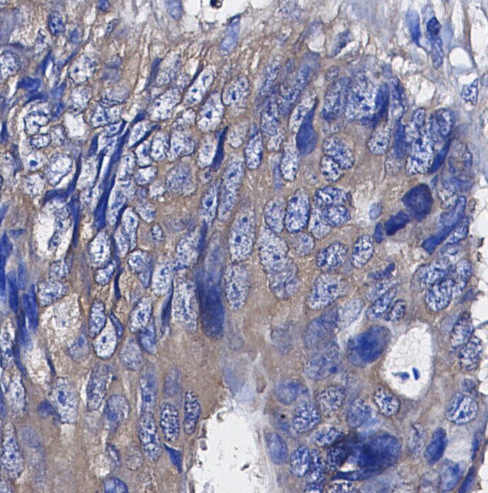 • Immunohistochemical analysis of formalin fixed paraffin embedded human Colorectal cancer tissue with F1032 at 1/200 dilution.