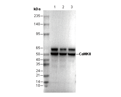 CaMKII Antibody [K10C12] recognizes endogenous levels of total CaMKII protein.