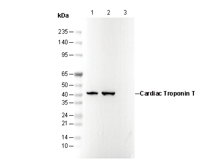 Cardiac Troponin T Antibody [P20C12] recognizes endogenous levels of total Cardiac Troponin T protein.