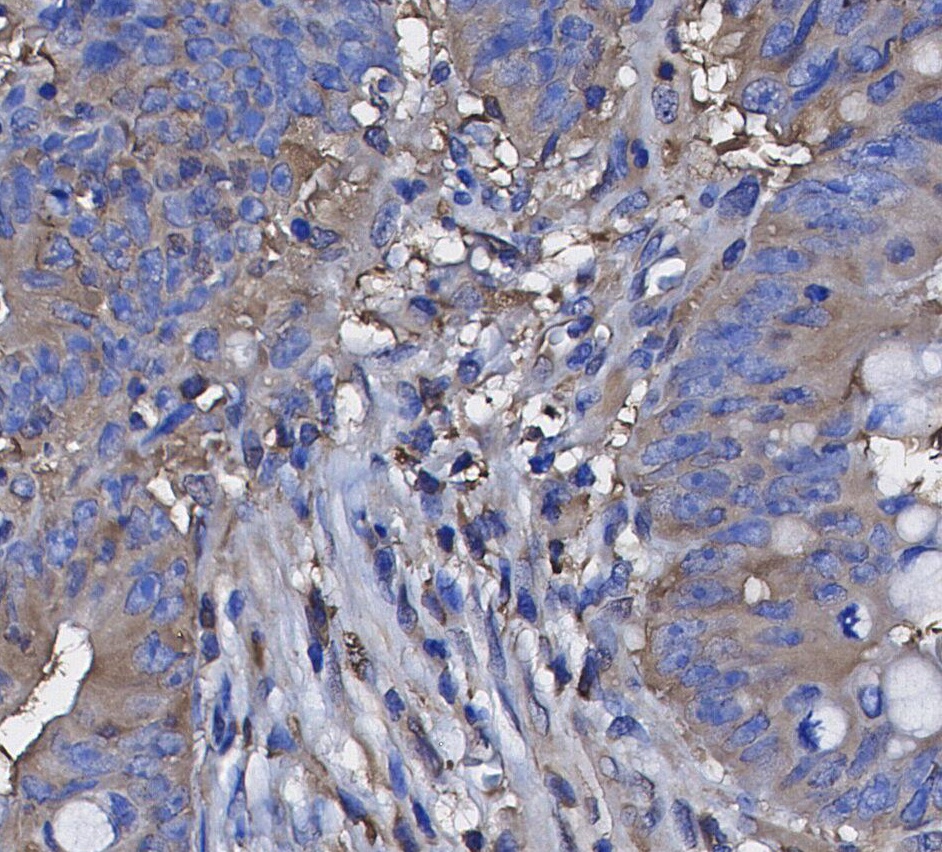 • Immunohistochemical analysis of formalin fixed paraffin embedded human Colorectal cancer tissue with F0461 at 1/200 dilution.