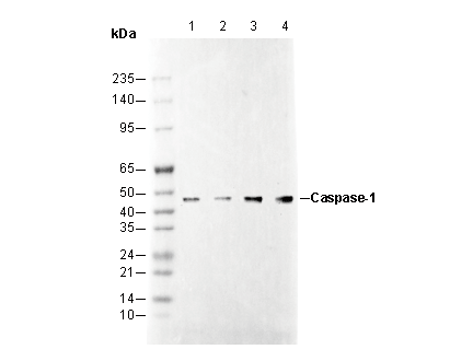 Caspase1 Antibody [D17C3] recognizes endogenous levels of total caspase-1 protein. It recognizes both the full-length and the processed C-terminal p10 fragment.