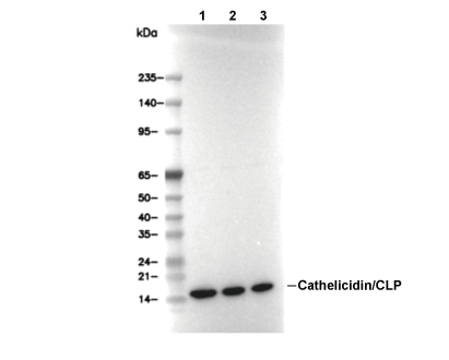 Cathelicidin/CLP Antibody [G7D10] detects endogenous levels of total Cathelicidin/CLP protein.