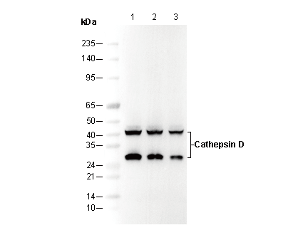 Cathepsin D Antibody [P17C14] recognizes endogenous levels of total cathepsin d protein.
