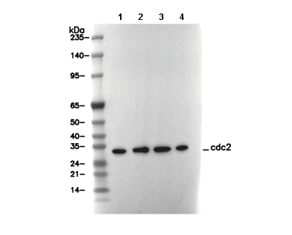 cdc2 Antibody [C23A20] recognizes endogenous levels of total cdc2 protein.