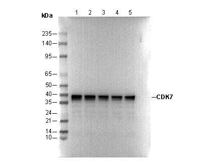 CDK7 Antibody [K20N22] detects endogenous levels of total CDK7 protein. The antibody does not cross-react with other CDKs.