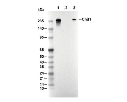 • Lane 1: HEK-293T, Lane 2: HEK-293T (KO CHD1), Lane 3: K562