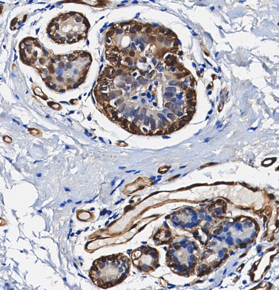 • Immunohistochemical analysis of formalin fixed paraffin embedded human Breast Cancer tissue with F2155 at 1/100 dilution.