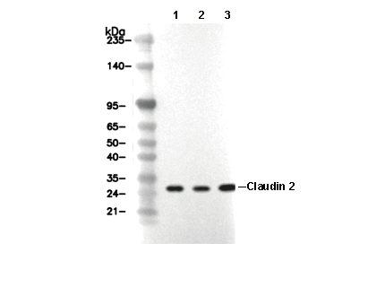 Claudin 2 Antibody [K9A14] detects endogenous levels of total Claudin 2 protein.