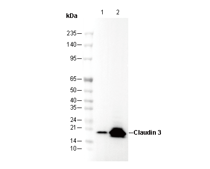Claudin 3 Antibody [N24P8] recognizes endogenous levels of total Claudin 3 proteins.