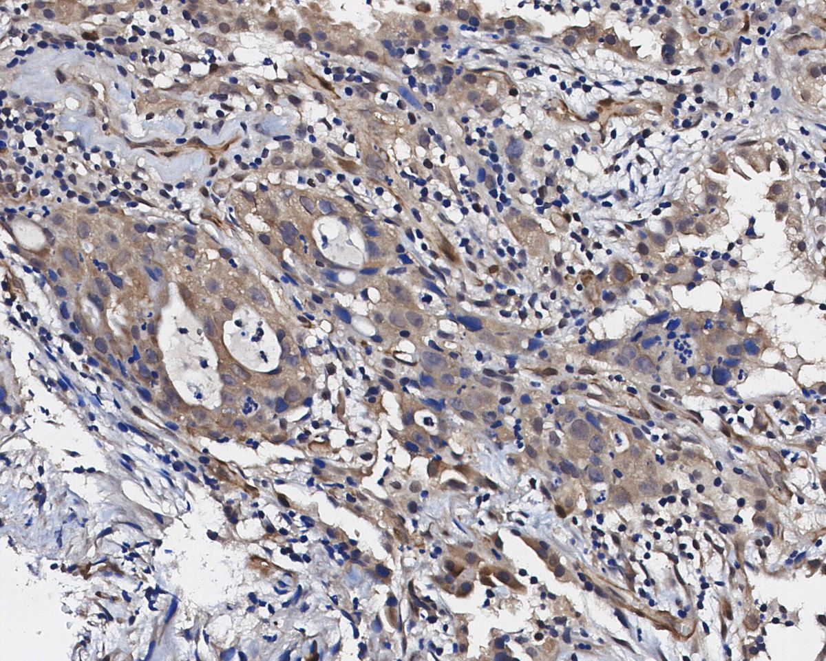 • Immunohistochemical analysis of formalin fixed paraffin embedded human Lung adenocarcinoma tissue with F0135 at 1/1000 dilution.