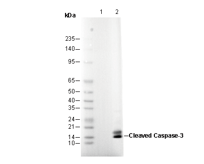 This antibody specifically recognizes the cleaved fragments of Caspase-3 (17/19 kDa) and does not detect full-length Caspase-3.