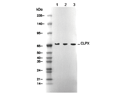 CLPX Antibody [C16E7] recognizes endogenous levels of total CLPX protein.