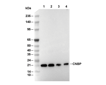 CNBP Antibody [E10D2] detects endogenous levels of total CNBP protein.