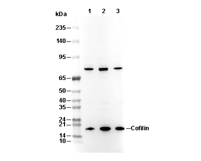 Cofilin Antibody [C12C10] recognizes endogenous levels of total Cofilin protein.