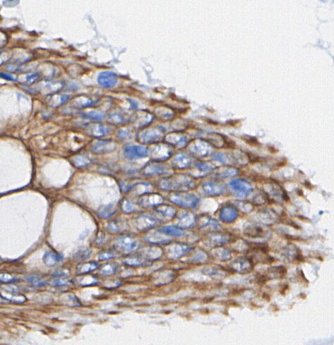 • Immunohistochemical analysis of formalin fixed paraffin embedded human Colorectal cancer tissue with F1228 at 1/50 dilution.