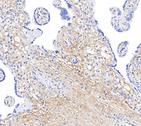 • Immunohistochemical analysis of formalin fixed paraffin embedded human placenta tissue with F1667 at 1:125 dilution.