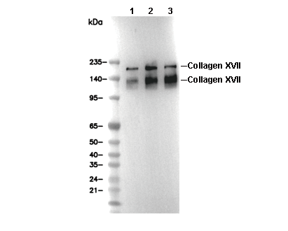 Collagen XVII Antibody [H3P15] detects endogenous levels of total Collagen XVII protein.