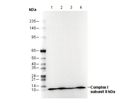 Complex I subunit 8 kDa/ NDUFS8 Antibody [L23N18] detects endogenous levels of total Complex I subunit 8 kDa/ NDUFS8 protein.