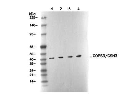 COPS3/CSN3 Antibody [F5P19] recognizes endogenous levels of total COPS3/CSN3 protein.