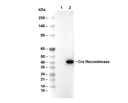 Cre Recombinase Antibody [D11J17] detects transfected and transgenic levels of total Cre recombinase protein.